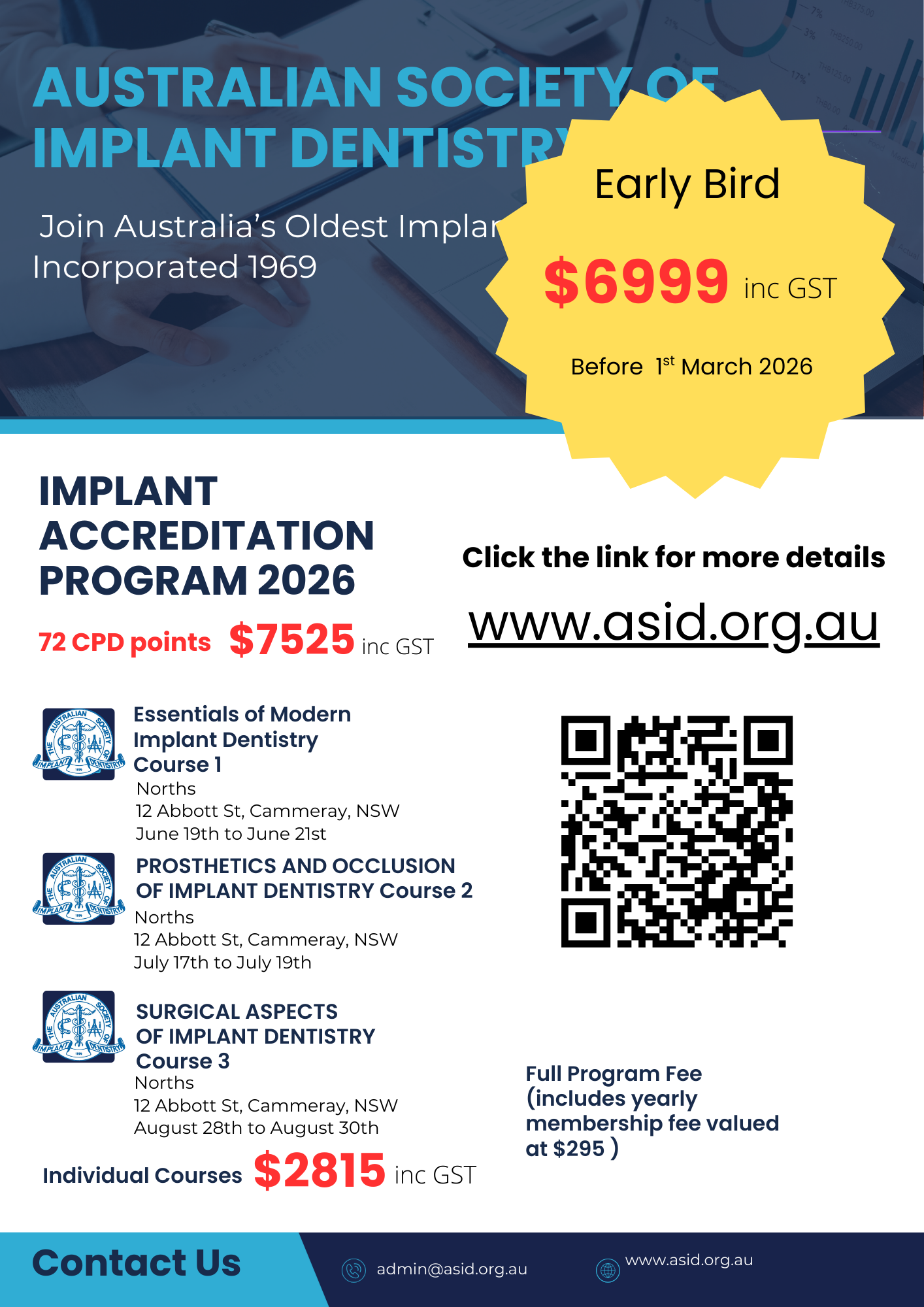 The Australian Society of Implant Dentistry (ASID) is an organisation geared toward the promotion, sharing and teaching of knowledge in the field of dental implantology. First formed in 1969, it works to offer a support network for its professional members and information for the general public.