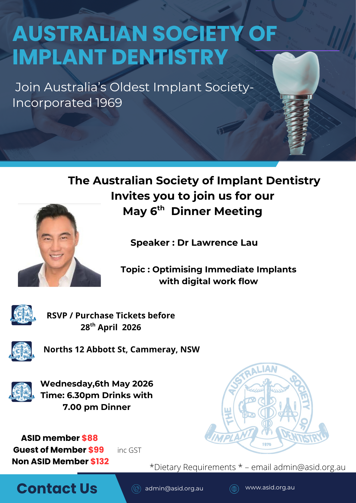 Sponsorship provides a great means of broadening your competitive edge by improving your company’s image, prestige and credibility by supporting the longest standing dental implant society in Australia.