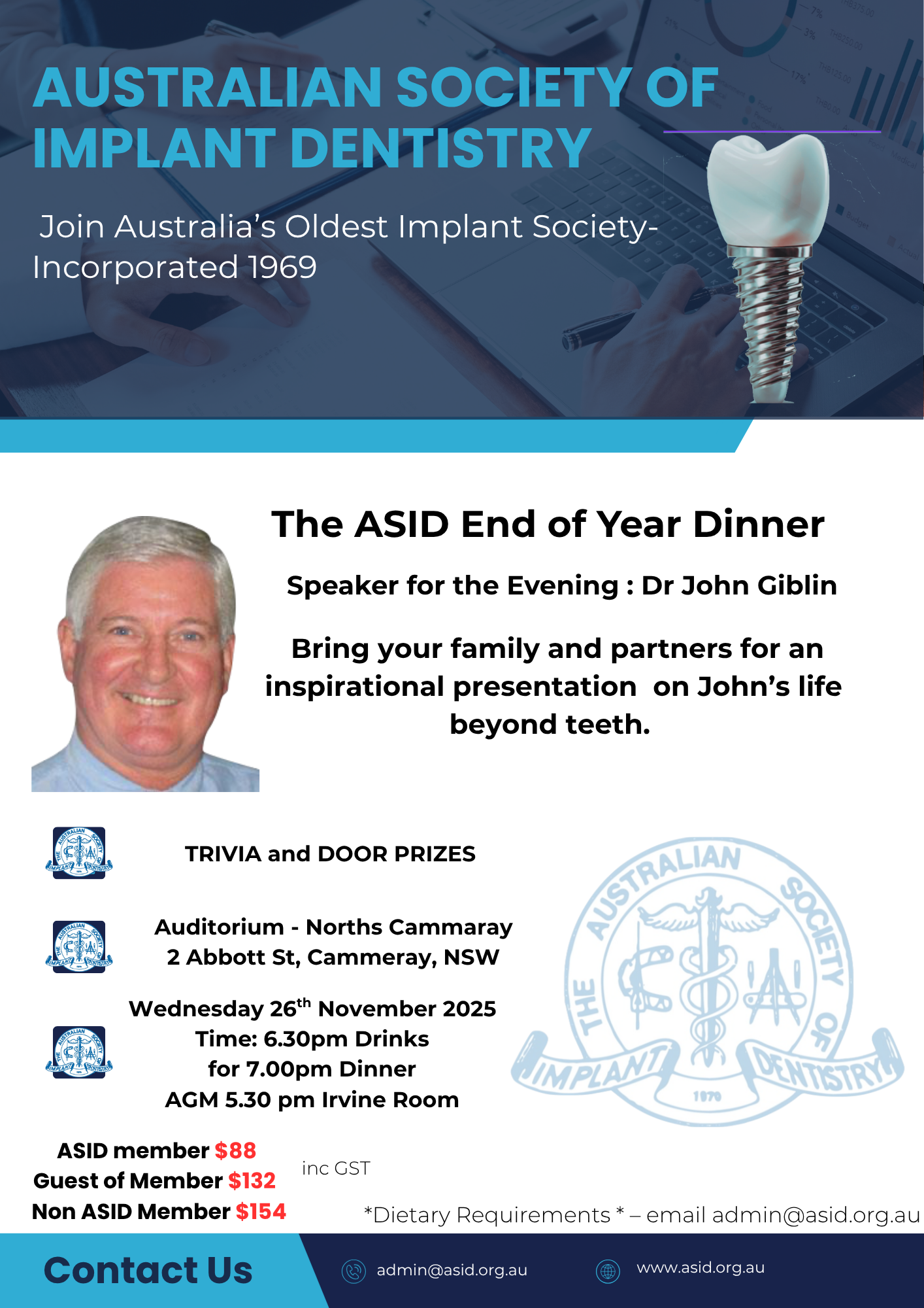 Please email your dietary requirements in advance and purchase a ticket to attend if you haven't already. Please note ASID membership is required to be financial for 2025 to pick up a membership dinner price.